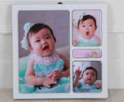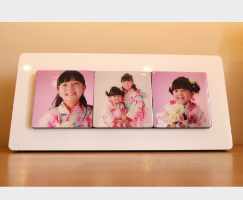 クリスタルフレームmini3・mini5mini3(フレーム14cmx30cm 8cmx8cm 3カット) 裏面がマグネット式だから取り外しができて、入れ替えも可能です! |