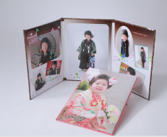 ChouChou-チュチュ-スリムなサイズで保管もしやすい (A4 10P16カット)10P16カット 59,800円 表紙と裏表紙にも写真が入って、七五三ならではのカワイイテンプレート式。 |